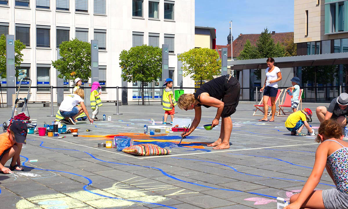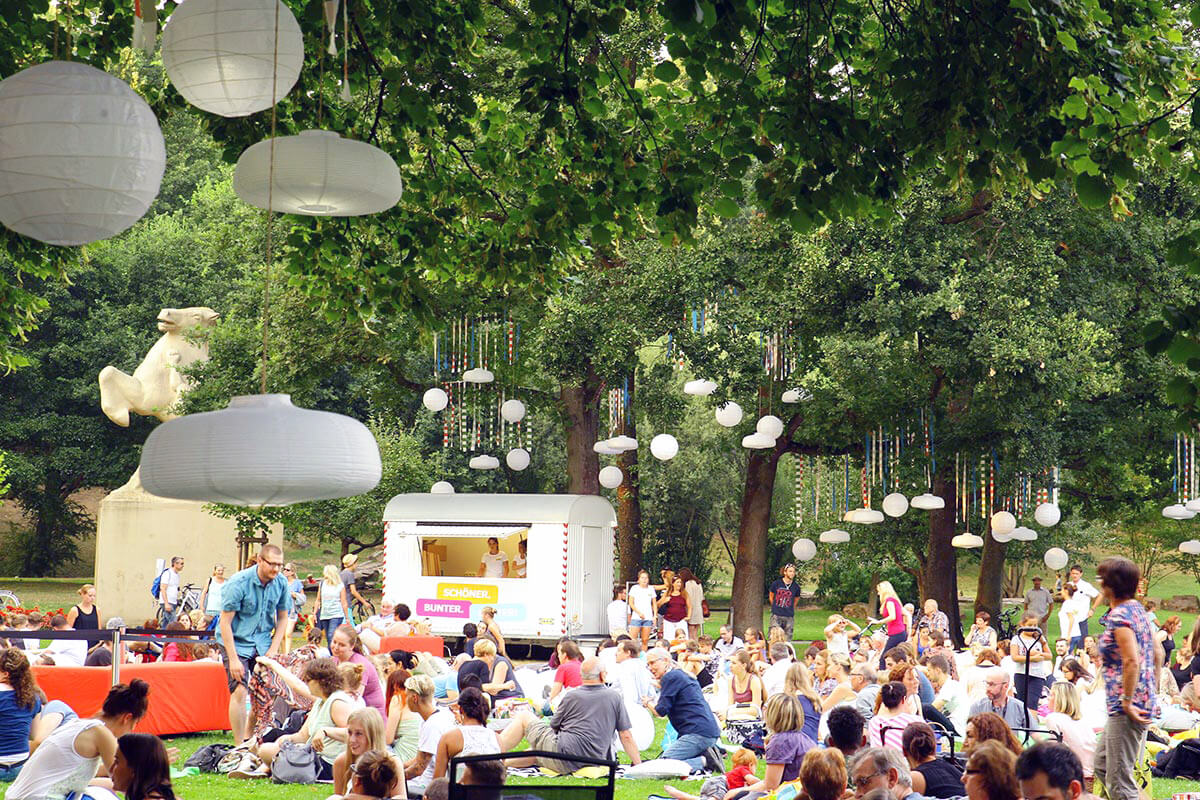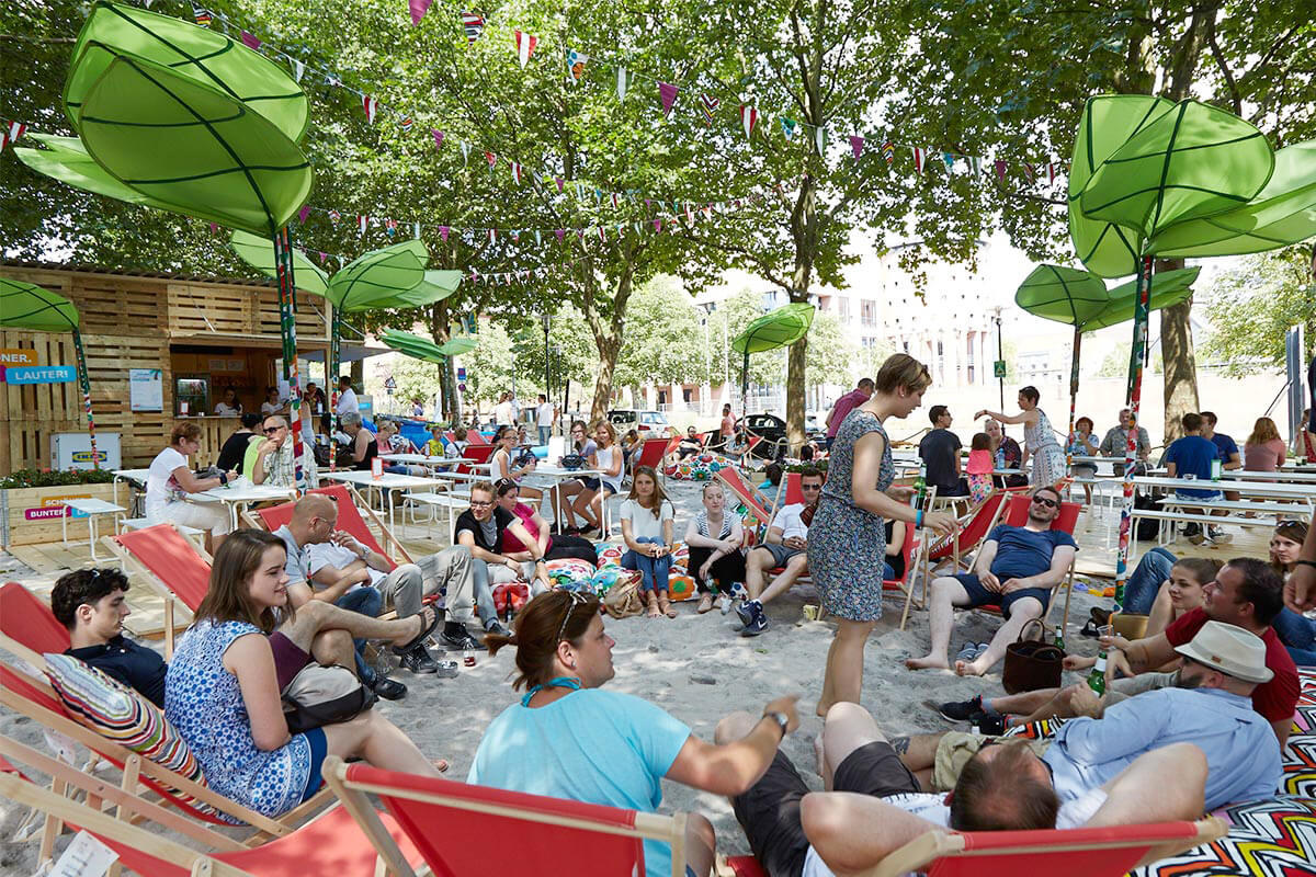 Unter dem Motto „SCHÖNER.BUNTER.LAUTER!“ holten wir die Lauter zurück an die Oberfläche. Mit Hilfe verschiedener spektakulärer und phantasievoller Installationen aus Stoffen, Möbeln, Lichtern, Pflanzen und Wohnaccessoires zeichneten wir den Verlauf der nicht sichtbaren Lauter einmal quer durch die Innenstadt nach und bescherten den Lauterern so einen unvergesslichen Sommer am Fluß.